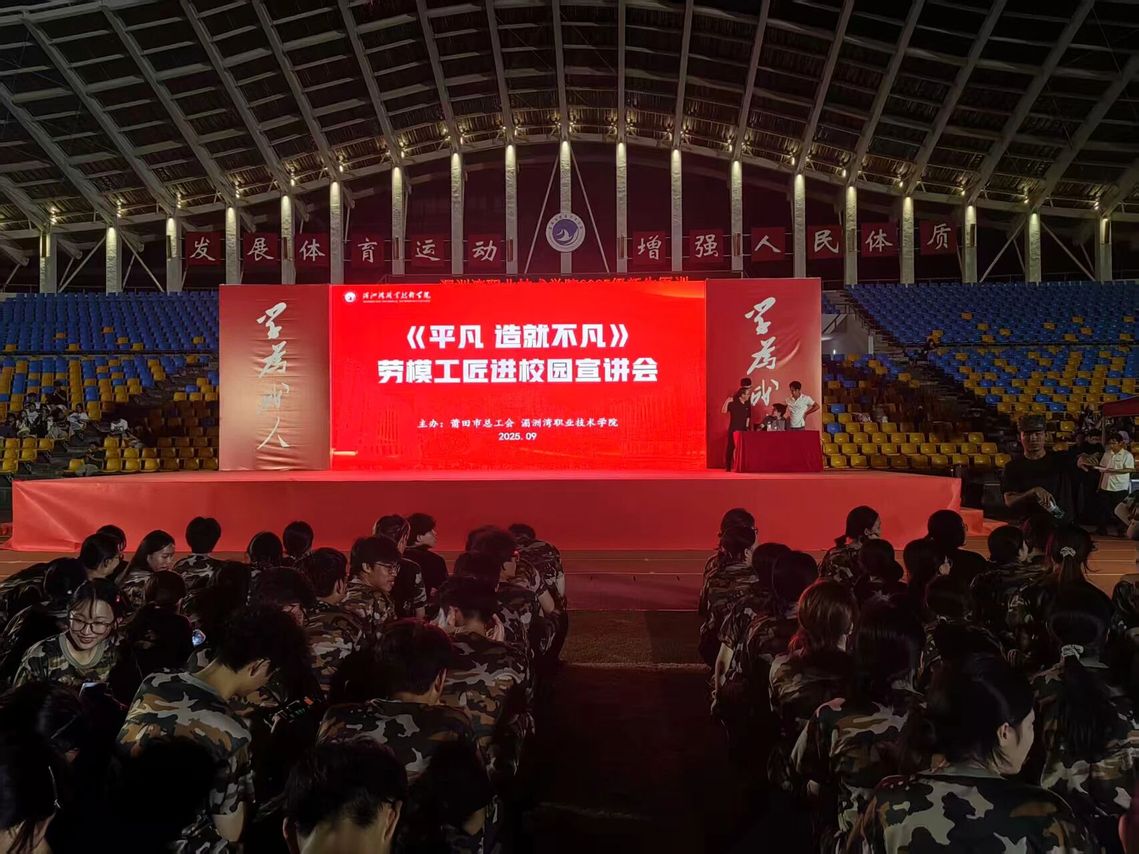 9 月 18 日晚,湄洲湾职业技术学院 “开学第一课” 别样精彩,全国劳动模范严国圣与莆田木雕代表性传承人林飞鹤同台开讲,以自身经历为师生诠释实干与匠心。